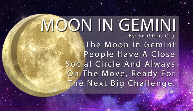 But, this mode is where they're most comfortable. People with this position need a constant whirlwind of activity and information around them. The Internet Age was made for them, as they are always striving to feed their brains somehow. However, Gemini Moon males and females usually specialize in breadth not depth, taking a lot of things in but rarely sticking too intensely to one thing. Few people can multitask like them, however, and they can be truly in their element at a party. They enjoy spreading themselves around and are insatiably interested in what's going on with everyone.